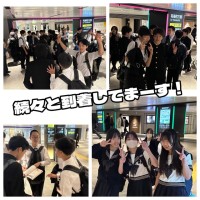 いよいよ修学旅行!1番乗りの生徒が到着しました〜!僅差で男子生徒も到着!満面の笑...