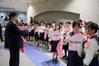 発表担当の生徒たちがプレゼンを行い、 参観するのは、小学校6年生と中学校3...