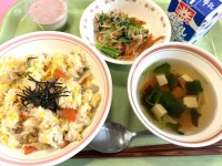 ・ごはん・いかのかりん揚げ・中華風和え物・飛鳥汁・牛乳いかのかりん揚げは、下味をつけて、米粉と片栗粉を合わせた粉をまぶして揚げています。米粉を使うことで、外はカリっと、中はやわらかく仕上がります。人気...