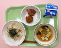 ・ちらしずし・鶏のから揚げ・すまし汁・牛乳本日の主菜は大人気の「鶏のから揚げ」。調理員さんが800個のから揚げをカラッと揚げてくれました。3年生のクラスでは、残ったから揚げをかけてじゃんけん大会が行わ...