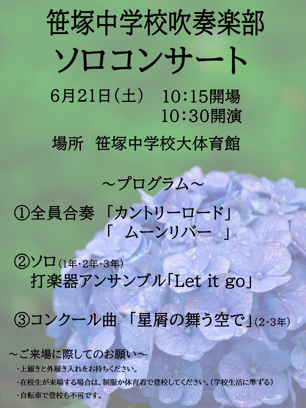 吹奏楽部ソロコンサートのお知らせ JPEG