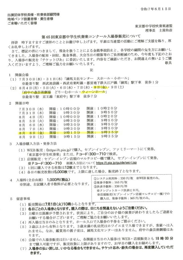 (5)の留意事項をよくお読みいただき、間違いのないようご購入ください。笹塚中は8月8日(金)です!