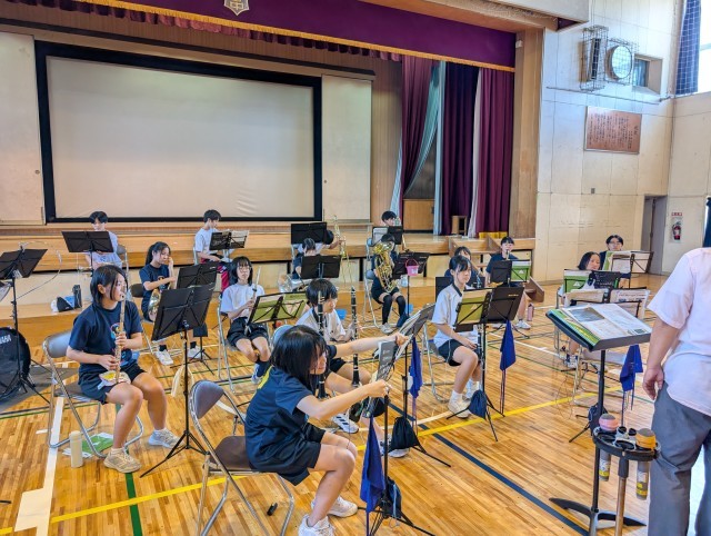 笹中生は夏の暑さにも負けず、元気に部活動に励んでいます。先日はソフトテニス部、今日はバドミントン部が練習試合を行っています。吹奏楽部も8月8日のコンクールに向けてラストスパートです。