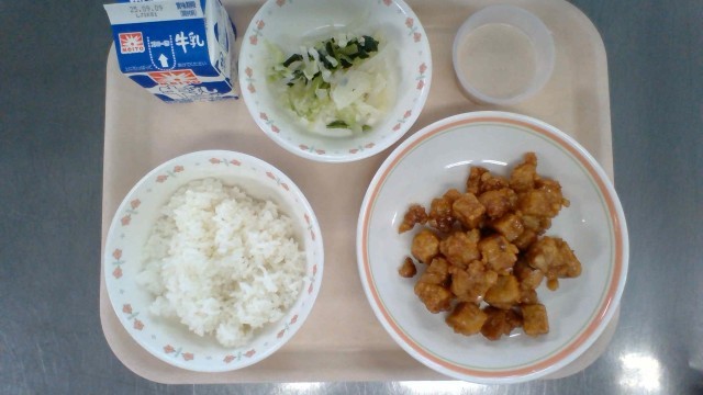 今日は長野県茅野市の学校給食からいただいた献立です。茅野市と渋谷区は災害時相互応援協定を結んでいます。2月には2年生が移動教室で茅野市に伺う予定です。主菜に使用した高野豆腐は、9割が長野県で生産されているそうです。野沢菜は長野県野沢温泉村を中心に栽培されており、野沢菜漬けも有名です。デザートに使用した寒天も長野県の名産です。寒天の原材料のテングサは沿岸部で採取されていますが、寒天作りに適した長野県で生産されるそうです。