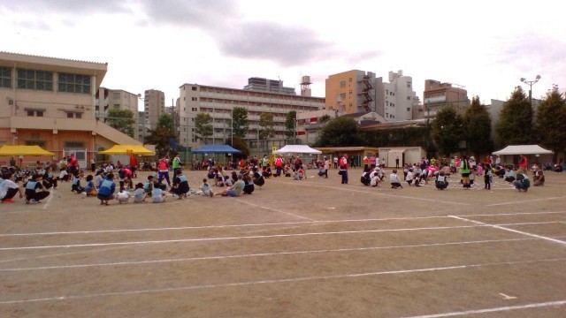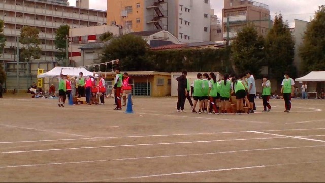 本日は、本校校庭で町民大運動会が開催されています。本校では、昨日は学芸発表会であったにもかかわらず、ボランティア生徒が16名も参加しています。黄緑色のビブスを着用して様々な係活動を通して、運動会運営のお手伝いをしています。途中から少し雨が降ってきましたが、会場は大盛り上がりです。