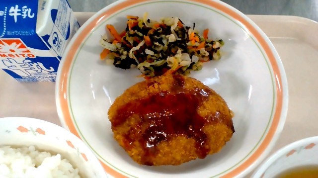 11月6日(木)の献立 公開日 2025/11/06 更新日 2025/11/06 今日の給食 ・ご飯・牛乳・メンチカツ・磯和え・すまし汁豚ひき肉に野菜のみじん切りを加えてよく練って、衣をつけて揚げました。ソースは中農・醤油・ケチャップです。お砂糖も少し入れています。秋なので、すまし汁に紅葉の形の生麩を入れました。紅葉バージョンです🍂