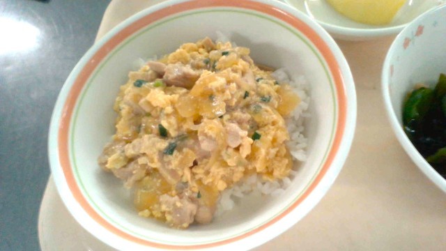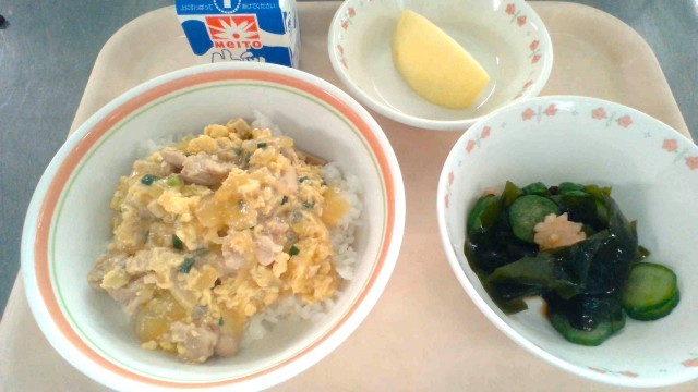 11月17日(月)の献立 公開日 2025/11/17 更新日 2025/11/17 今日の給食 ・親子丼・牛乳・わかめの酢の物・りんご親子丼の卵は半分を蒸して崩し、半分を出汁に溶き入れて固さを調整しました🍚明日は渋谷区立中学校一斉研究授業のため、給食後下校となります。