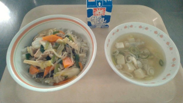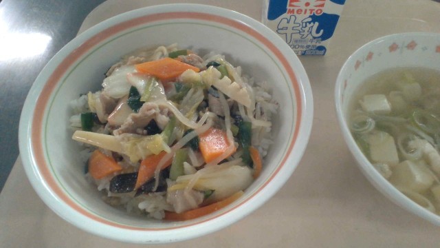 12月8日(月)の献立 公開日 2025/12/08 更新日 2025/12/08 今日の給食 ・中華丼・牛乳・長ねぎスープ中華丼はたくさんの野菜を使用します。食感にたけのこときくらげも使用しました。スープに入れた長ねぎは、、たっぷり8キロありました。