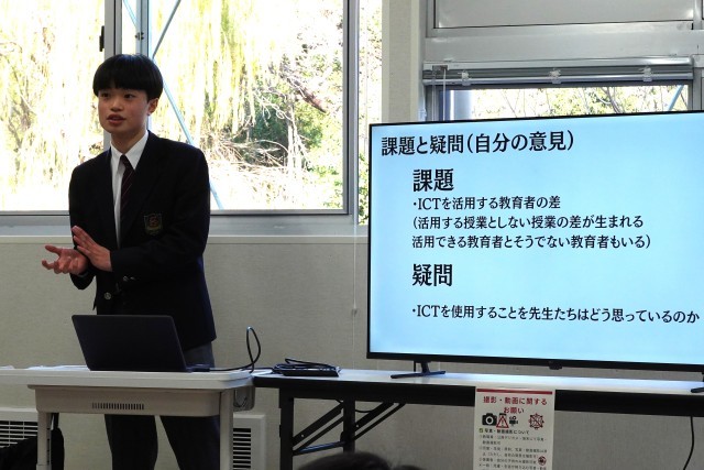 昨日3年生は探究フェスに参加し、本校からは学校を代表して3名の生徒が発表を行いました。