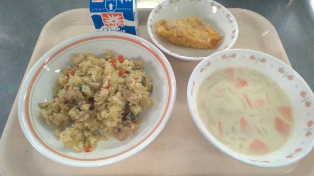 12月23日(火)の献立 公開日 2025/12/23 更新日 2025/12/23 今日の給食 ・カレーピラフ・牛乳・カレイの香草揚げ・コーンチャウダー今日はカラスカレイを使用しました。身がやわらかいので保育園の給食でよく使われる魚です。