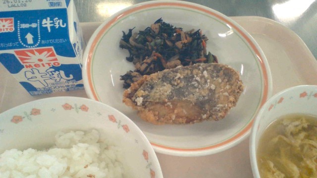 1月22日(木)の献立 公開日 2026/01/22 更新日 2026/01/22 今日の給食 ・ご飯・牛乳・𩸽の利休揚げ・ひじき煮・ちりめんふりかけ・めかたまスープ今日は受験や体調の関係でお休みが多かったのですが、よく食べてくれました。ありがたいことです☺