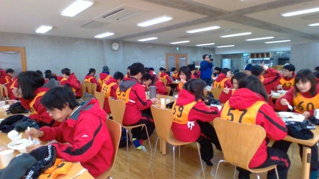 昼食は宿舎に戻ってカレーライスです。午後のスキー教室に備えます。美味しくて食べ過ぎ注意。