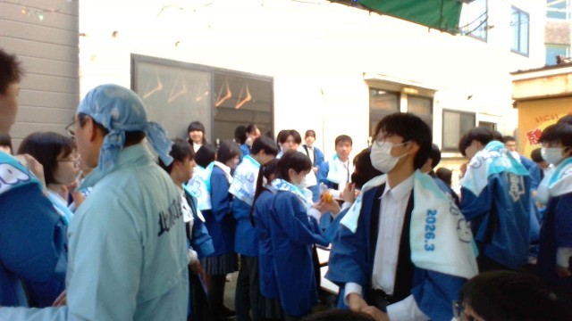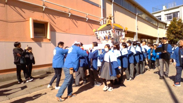 十五祭の神輿担ぎです。十号通りにもご協力いただいて、3年生が練り歩きました。途中、北親町会には休憩所をご用意いただき、お菓子やお茶をいただき、パワー注入させていただきました。本当にありがとうございました!