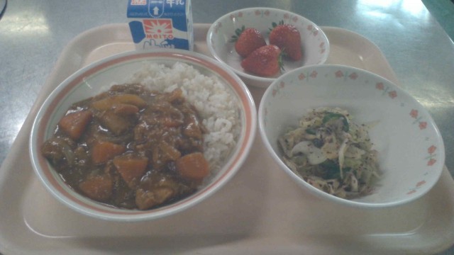 3月18日(水)の献立 公開日 2026/03/19 更新日 2026/03/19 今日の給食 ・チキンカレー・牛乳・ゆかり和え・果物(いちご)3年生最後の給食は、カレーライスでした。本日の卒業式も、無事終了いたしました。3年生の皆さん、ご卒業おめでとうございます🌸