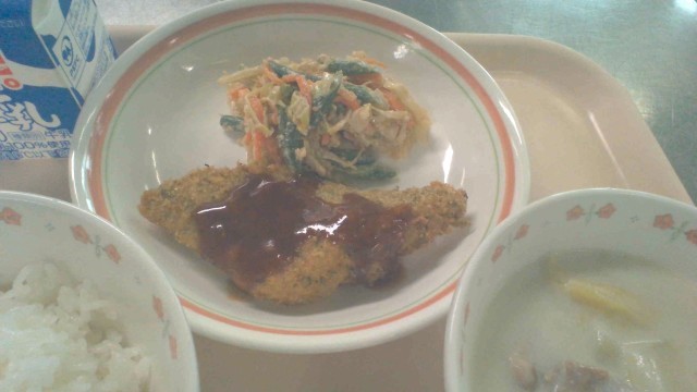 3月23日(月)の献立 公開日 2026/03/23 更新日 2026/03/23 今日の給食 ・ご飯・牛乳・白身魚フライ・ごま和え・白菜クリームスープ今日のフライは真鱈を使用しました。パン粉には青のりが入っています。今年度の給食も、あと1日です。
