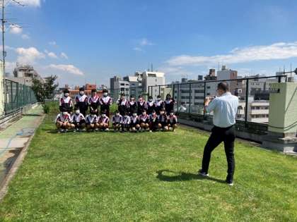 3日間の定期考査が終わりました! 公開日 2021/09/10 更新日 2021/09/10 お知らせ 今週から学校が始まり、水曜日からは3日間の定期考査期間でした。 写真は、テスト終了後の青空の下での写真撮影(屋上)です。満面の笑みですね。ボランティア部の生徒がこの春に撒いた芝生も芽を出し芝生の上で撮影ができました✿