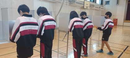 投票は、渋谷区選挙管理委員の方から選挙についての講話をいただくだけでなく、記載台、投票箱もお借りし、実際の選挙と同じように実施しました。会場の様子に、みんな少し緊張した面持ちで真剣に臨んでいました。渋谷区では20代の若者の60%が選挙に参加していたそうです。未来の日本を支える皆さんも、社会のことを考え参画していきましょう!