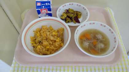 大学芋は全校生徒のリクエストメニューです。キムチ炒飯は9月のリクエストでしたが、夏休み延長に伴う献立変更の為10月の献立に取り入れました。今日の午後は運動会の全校練習です。しっかり食べて練習も頑張りましょう。
