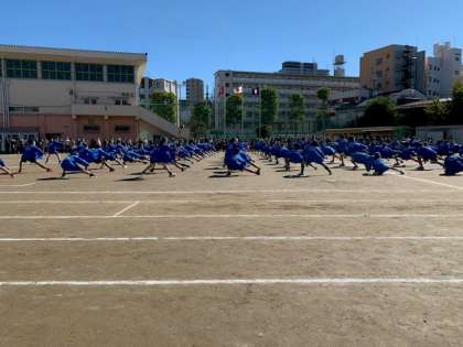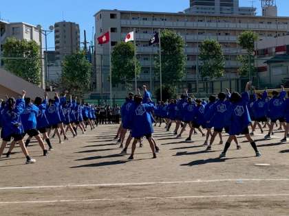 笹中ソーラン。今年は全員が法被を着用し、力強く演舞していました。伝統を引き継いでいます。