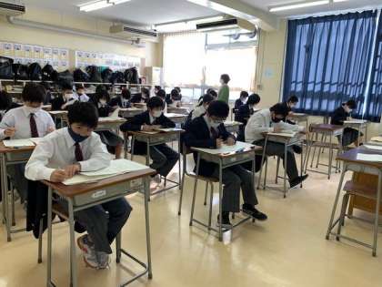 後期中間考査2日目 公開日 2021/11/11 更新日 2021/11/11 お知らせ 本日から1・2年生もスタートしました。今日は国語と社会です。1・2・3年生の各教室の様子です。最後まであきらめず取り組んでいます。