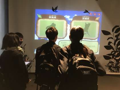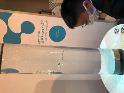 水の科学館では、クイズに挑戦したり、シャボン玉に囲まれる体験をしたりしています。