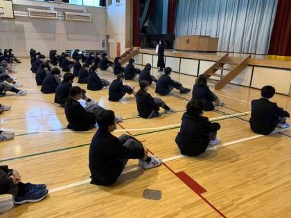 本日は全校朝礼でした。学校長からは人権週間についての話がありました。生活指導担当から12月の安全目標、生活目標についての話がありました。もう少しで冬休みに入ります。限られた時間を大切に使い、後期前半のまとめをしっかり行いましょう。