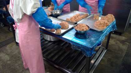 成形作業が始まりました。 サラダもたっぷりです🍴