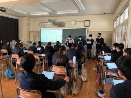 2枚目の写真は、2年生が実際に作成したものを発表しています。渋谷科の視点からも考えてまとめています。「横浜では、ごみが少なく環境が良かった。笹塚や幡ヶ谷も喫煙やポイ捨てなどを控えて環境をよくする。」「ボランティアに参加する」など感想を発表していました。
