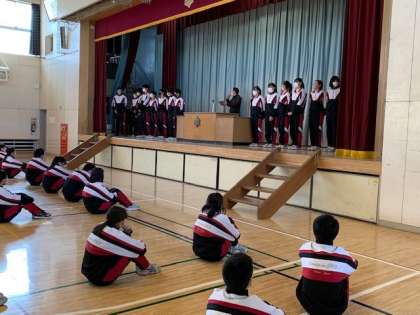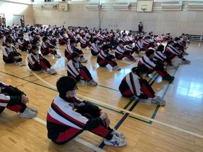 今日で後期の前半が終了しました。全校集会では学校長から今年の振り返りと新年に向けての抱負について話がありました。生活指導主任からは冬休みの生活の注意点について話がありました。また1月に行われる渋谷ニュー駅伝に出場する選手の紹介を行いました。笹中の代表としていい走りをしてください。