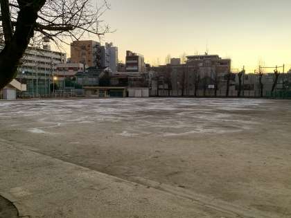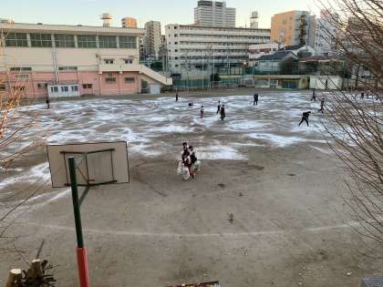 部活の生徒の協力で、校庭に凍結防止のため、塩化カルシウムを散布しました。