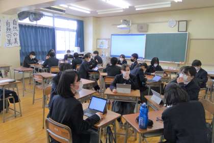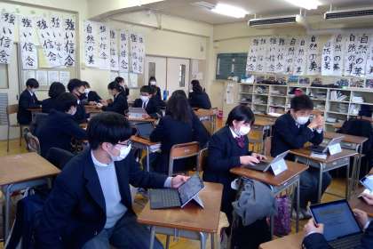 昨日は専門委員会・評議会がありました。現在生徒会執行部では、執行部と各専門委員会同士との連携をさらに深める活動を模索しています。その一環として、評議会の改革を始めました。これまでは報告・質疑応答のみでしたが、グループに分かれての意見交流や相談を通して様々な立場・視点から、生徒会活動を再構築する手がかりを探していきます。話し合い内容を入力し、常に最新の情報が共有できるよう、もちろんタブレットを活用しています!
