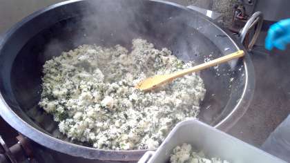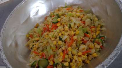 鶏のトマトクリーム煮に合わせるご飯は、ほうれん草バターライスです。コーンサラダも仕上がりました。
