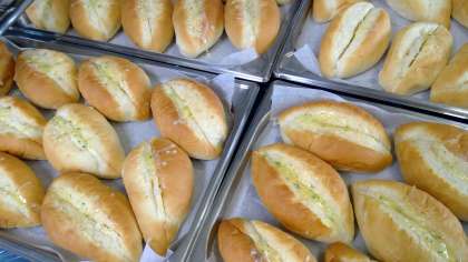 今日の給食室はパン屋さんです🍞回転釜で作っているのはシチューです🍚