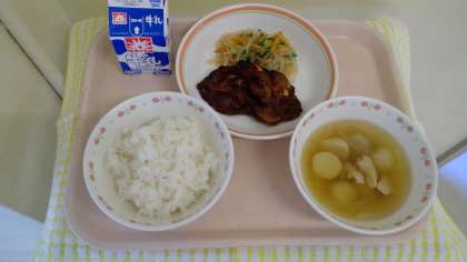 2月17日(木)の献立 公開日 2022/02/17 更新日 2022/02/17 今日の給食 ・ご飯 ・牛乳 ・豚肉の中華風味噌焼き ・バンサンスー ・すまし汁 中華風味噌焼きの味付けは、テンメンジャン・ケチャップをベースに、醤油・豆板醤なども加えています。バンサンスーに使用している春雨は緑豆春雨です。 食材産地 にんにく 青森 きゅうり 群馬 人参 千葉 もやし 栃木 玉ねぎ 北海道 里芋 北海道 豚肉 茨城 鶏肉 北海道