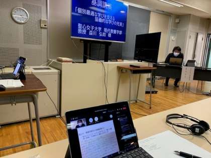 研究発表会(5) 公開日 2022/02/19 更新日 2022/02/19 お知らせ 授業終了後の全体会では、本校の研究の内容について、講師による基調講演などの発表をオンラインにて行いました。講演では、ブレイクアウトルームを使い、参加者による参加型の演習も行われました。今後も、今回取り組んだ研究の成果や課題を生かし、さらに指導法の開発に努め、未来の学びを実現するための研究と実践を続けていきます。