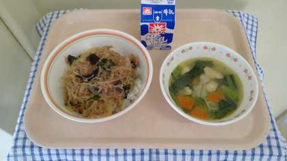 2月25日(金)の献立 公開日 2022/02/25 更新日 2022/02/25 今日の給食 ・麻婆春雨丼 ・牛乳 ・ワンタンスープ 1・2年生の皆さん期末考査お疲れさまでした✍結果が楽しみですね。今日はゆっくり休んで、来週も頑張りましょう💪✨ 食材産地 にんにく 青森 生姜 高知 ニラ 栃木 玉ねぎ 北海道 人参 千葉 小松菜 千葉 鶏肉 北海道 豚肉 茨城