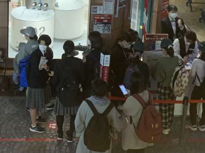 校外学習(キャリア教育) 公開日 2022/03/04 更新日 2022/03/04 3年生 自分が気になるパビリオン(お仕事)に並んで、体験の予約をしています。 パフォーマーとしてダンスを踊る生徒、ベーカリーでパン職人として働いて成果を見せにきた生徒の写真です!
