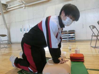 本日は1,3年生が体育館にて救命講習会を実施しました。人工呼吸にAEDの使い方、いざという時の対処法を動画や体験を通して学ぶことができました!