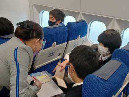 後半はエアポートゾーンで、買い物や注文の場面を体験指定しています。レストラン、売店、機内の3か所に分かれています。