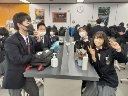 お昼ご飯でエネルギーチャージした後は、日本科学未来館を見学です。1年生、全員元気に学習しています!