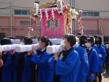 十五祭 #3 公開日 2022/03/12 更新日 2022/03/12 お知らせ 最後は1・2年生が見守る中、神輿で校庭を練り歩きました。全学年で仲の良い、笹塚中学校らしい温かい雰囲気の中、十五祭が終了しました。3年生の卒業まで、あと6日。仲間と過ごす時間を大切にして、卒業式で有終の美を飾ってください。