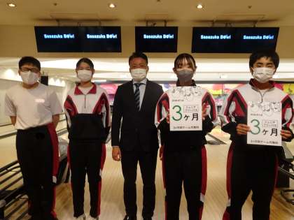 1年笹塚ボウル★ 公開日 2022/03/24 更新日 2022/03/24 1年生 1年生は、笹塚ボウルでボウリング学習をしました。初めてボウリングをする人も多かった中で、ボウリング部のメンバーは、最高スコア206をたたき出しました!日頃の練習の成果ですね。学校に戻ってきたあとは、球技大会です!