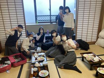 早いものであっという間に最終日を迎えました!実行委員が館内放送でノリノリの音楽をかけてくれ、みんなスッキリ目覚めました!朝食を取り、これからタクシーで班別行動をします♩