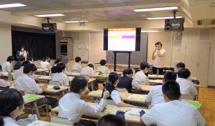キャリア教育(2年) 公開日 2022/07/01 更新日 2022/07/01 お知らせ 一人ひとりが目的を持って職場体験に行くことができるように今日は、パーソルキャリア株式会社の竜田さん(とても分かりやすい説明をしてくださいました!)の授業を2時間受けました。「職場体験で得られるもの」は、どんなことがあるかを考えたり、実際、どんな質問をすると中身のある回答が得られるのかを実際、グループになってやってみたりしました。職場体験に向けて一つ一つ進んでいますね!