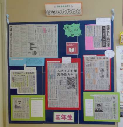 図書委員が毎日の新聞から自分たちの興味のある記事をスクラップし、まとめました。