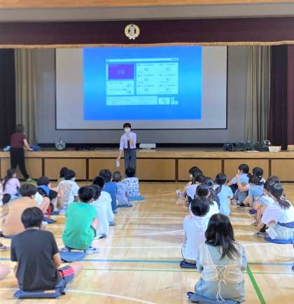生徒会の生徒と代表の1年生が笹塚小学校と中幡小学校へ出向き、小学6年生に向けて「中学校ってこんなところだよ」と説明に行きました。校舎の案内や部活の紹介、生徒会の活動など事前に作成した動画を流しながら説明をしたり小学生の質問に答えたりしました。最後には笹塚中学校、笹塚小学校、中幡小学校の3校をオンラインでつなぎ生徒会長のあいさつを聞いたりしました。中学生の視点で直接中学生の言葉で伝えることでより中学校が身近に感じることができたのではないでしょうか。
