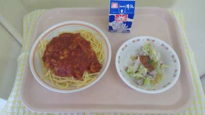 今日は全校生徒のリクエストメニューです。トマトソースパスタかガーリックオイルパスタのアンケートで、トマトソースになりました🍝明日は渋谷ワンダフル給食です。