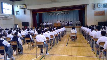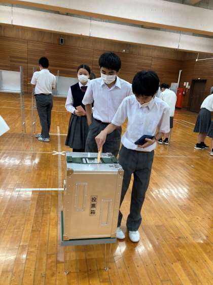 生徒会役員選挙立会演説会 公開日 2022/10/01 更新日 2022/10/01 お知らせ 9月30日 数年ぶりにオンラインではなく体育館に集合して演説会が行われました。3年生にとっても初めてのかたちです。 今回の選挙結果の公示は、来週です。