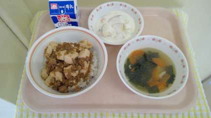 麻婆豆腐は前回辛いという声が多かったので少し辛さを控えてみました☺フルーツヨーグルトにはホイップクリームも入れています。