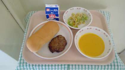 10月26日(水)の献立 公開日 2022/10/26 更新日 2022/10/26 今日の給食 ・照り焼きコッペパン ・牛乳 ・ごま醤油サラダ ・キャロットポタージュ 照り焼きハンバーグをパンに挟んで、照り焼きコッペパンです。ポタージュは焦がさないように温度を上げて仕上げます。 食材産地 しめじ 長野 玉ねぎ 北海道 にんにく 青森 生姜 高知 キャベツ 茨城 人参 北海道 豚肉 茨城